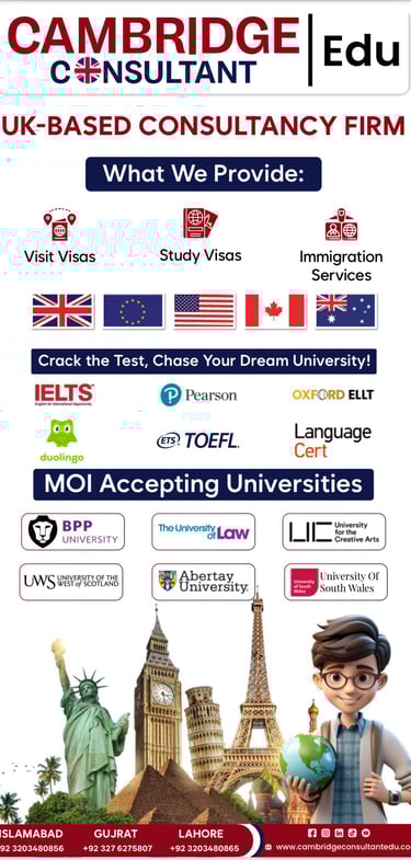 Explore exceptional consultancy services for higher studies in the UK, Canada, Australia, USA, and Europe.